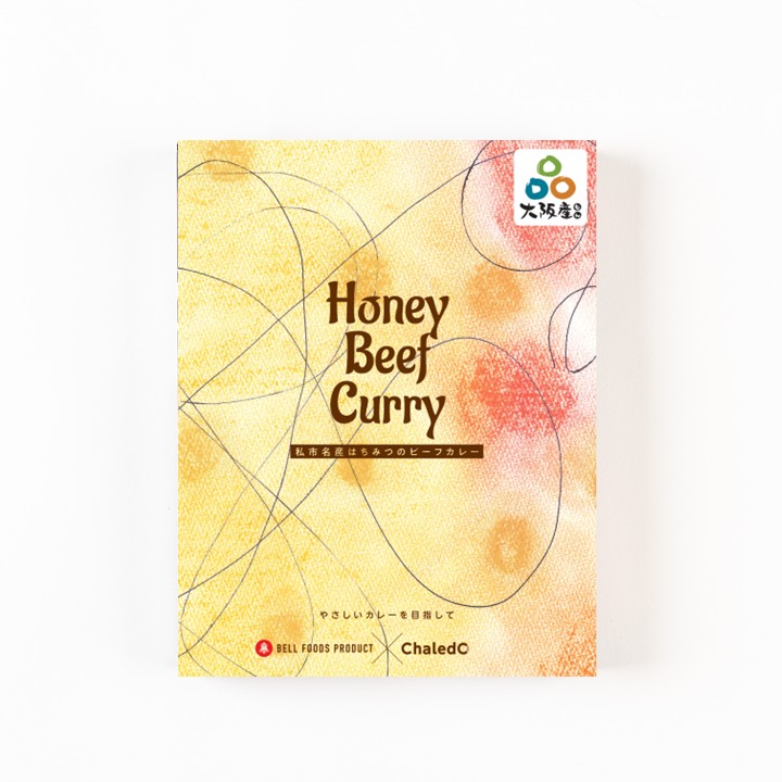 「Chaledo」のクリエイターがカレーをテーマに描いてくれたデザインを使用し、大阪産(おおさかもん)の認定を受けたレトルトカレー。