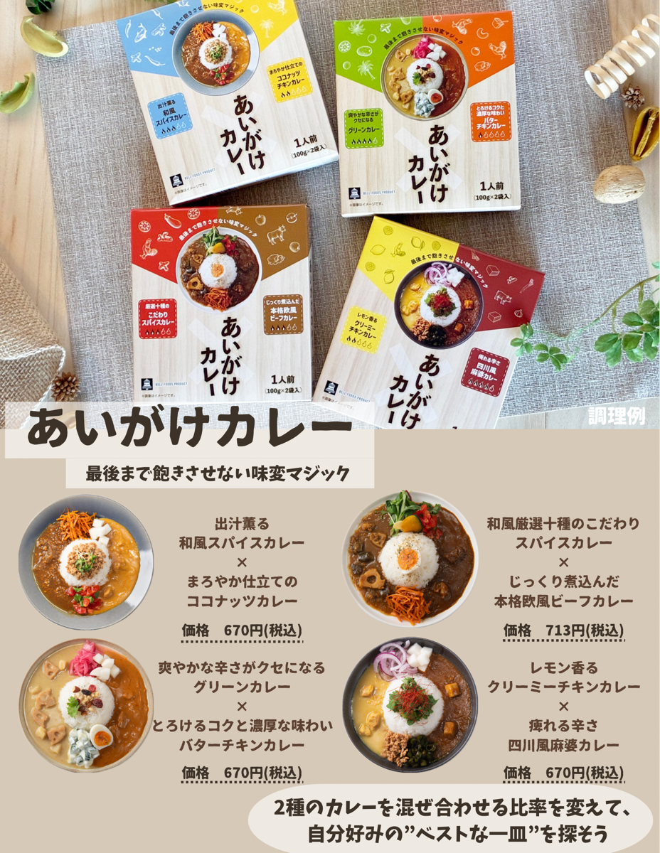 組み合わせ次第で、何度でも新しいおいしさに出会える新感覚「あいがけカレーシリーズ」。
